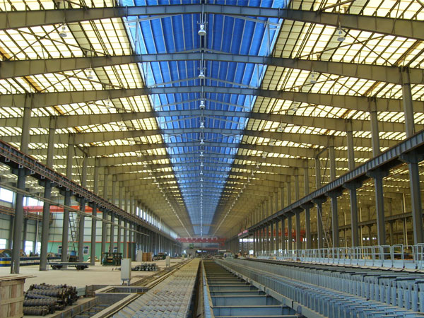 · 鋪設完畢以后,預留出采光瓦的位置,施工由檐口逐步往屋脊方向進行。采光瓦直接扣在鋼板的側波峰上。